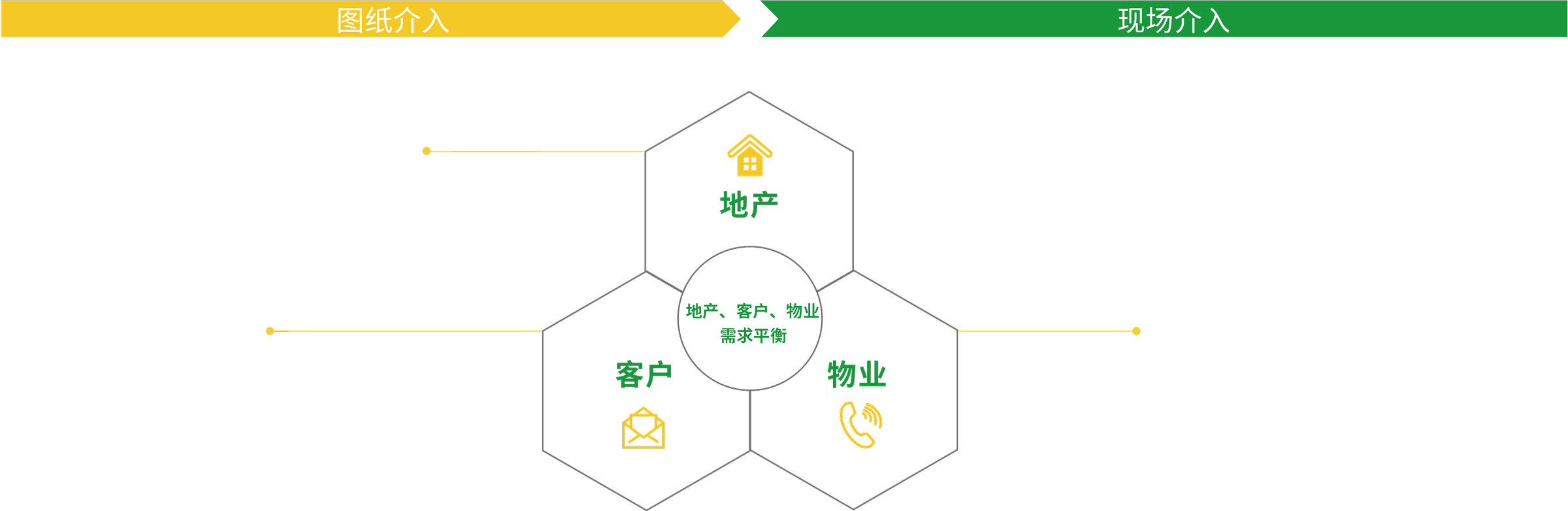 方案设计阶段,施工交付阶段,将客户需求植入地产开发,降低地产前期造价成本,物业后期运营成本,提升项目整体效率与客户满意度。