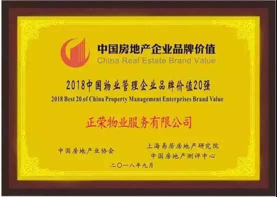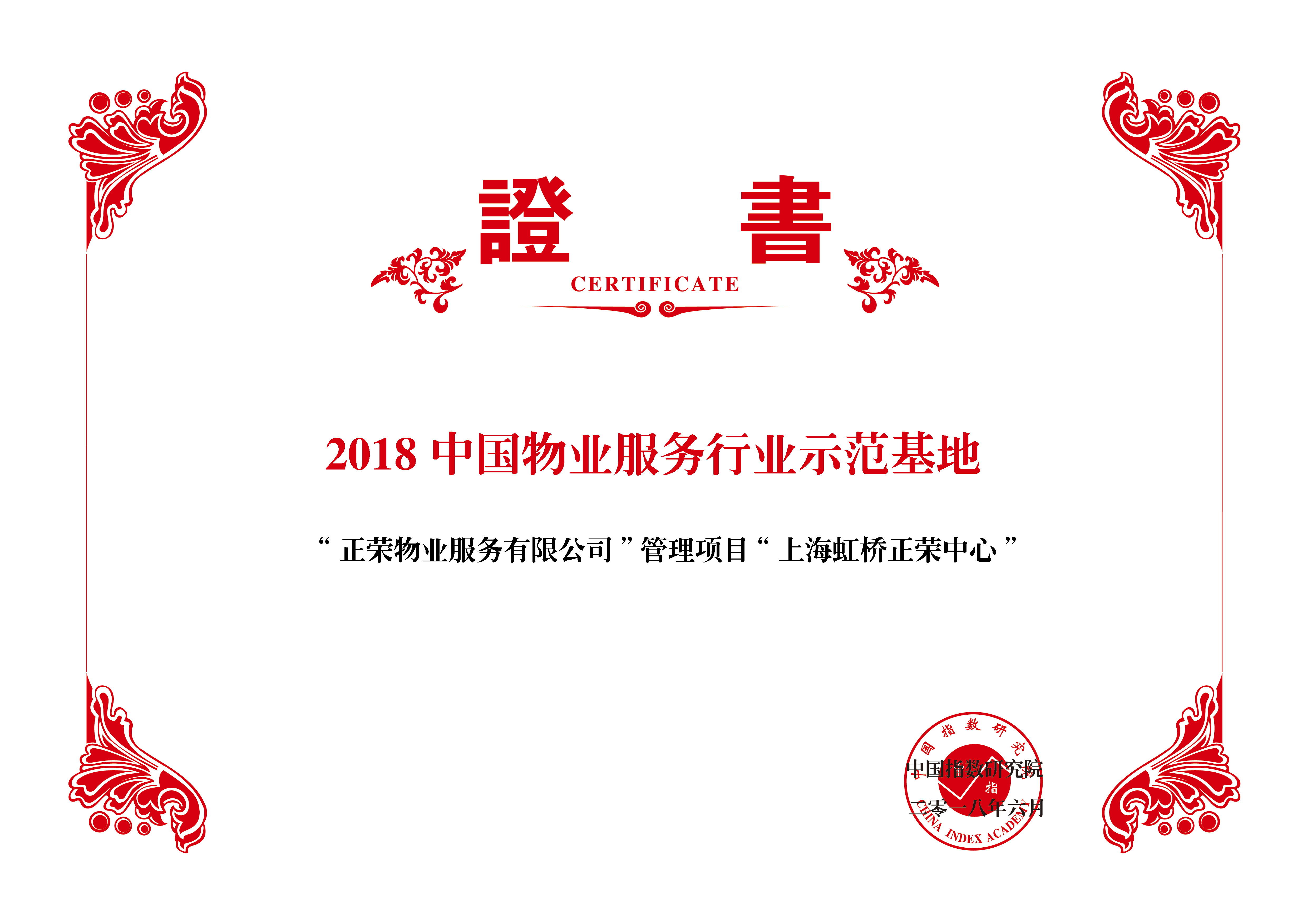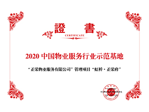 虹桥·正荣府入选2020中国物业服务行业示范基地